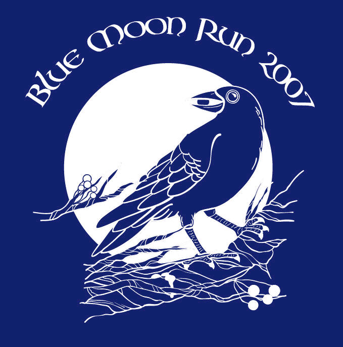 Cost- $10 pre-registered, $15 race-night. A limited number of Blue Moon Run shirts will be available for an additional $10. The shirt design is a raven against the moon. I will post a sneak preview here if available.