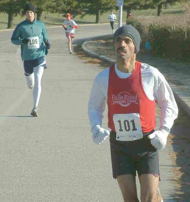 | Jim Adams and Laura DeWald at Cherry Blossom 2003 George Banker Photo | Maurice Pointer at the 2003 BRRC Ten Miler | ||